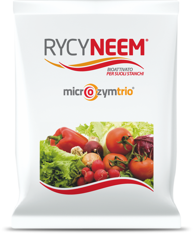 Agriges aconseja Rycyneem, la solución pre- trasplante que mediante el aporte exclusivo de cepas bacterianas termorresistentes como Thermoactinomyces spp., Streptomyces spp. y Bacillus spp, contenidos en la tecnología MycrozymTrio, aumenta localmente la temperatura en el terreno (generando un efecto “hot spot”) mineralizando rápidamente el material vegetal proveniente de brasicáceas seleccionadas presentes en el producto, aumentando la disponibilidad de nutrientes para la planta; mientras que dentro de sus componentes minerales, en especial el azufre, además del aporte de nutrientes adicionales genera una mejora en el pH del suelo, reduciendo la alcalinidad y mitigando el estrés.